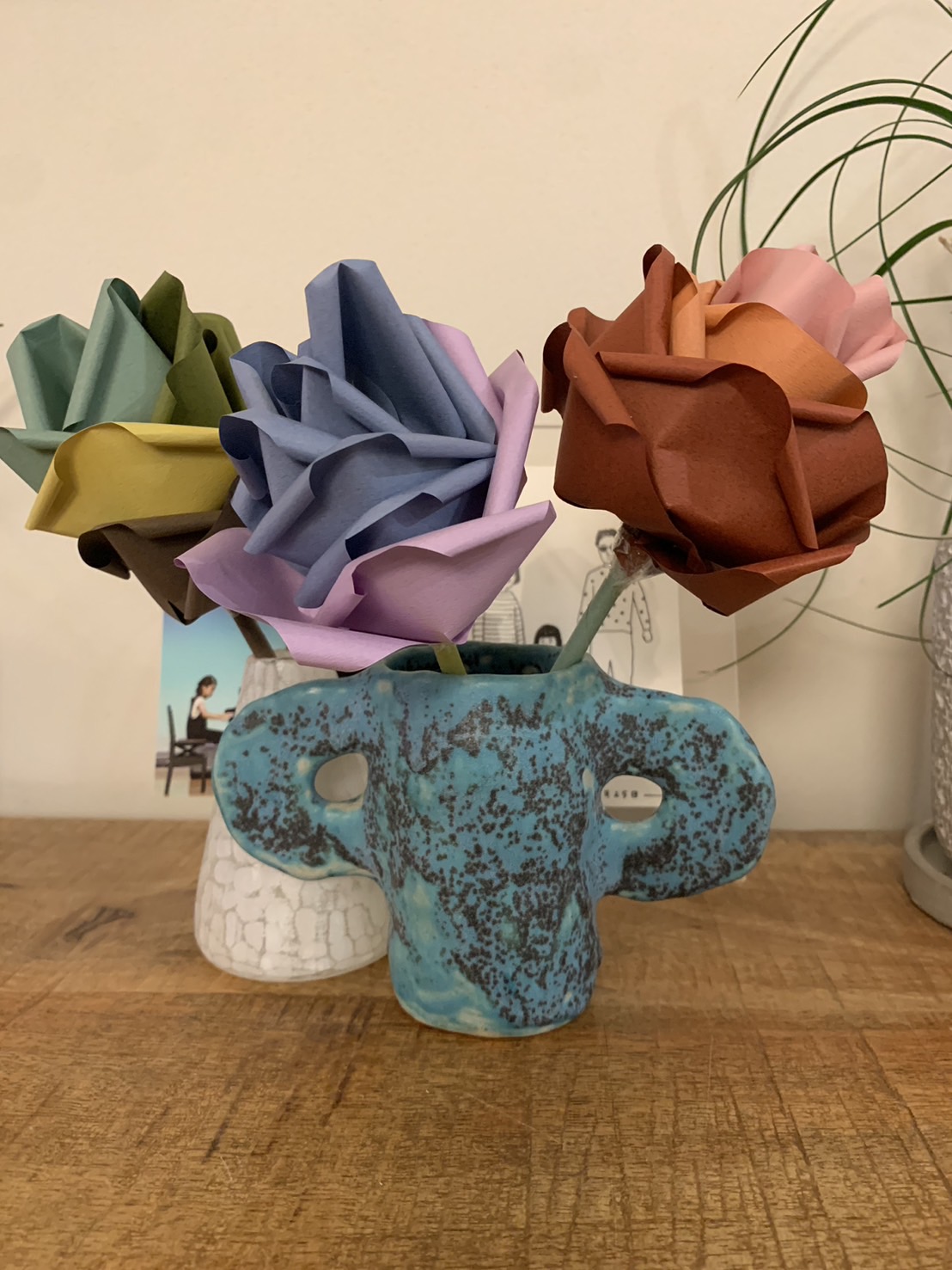 敬老の日用に折り紙で薔薇を一緒に作りました。
