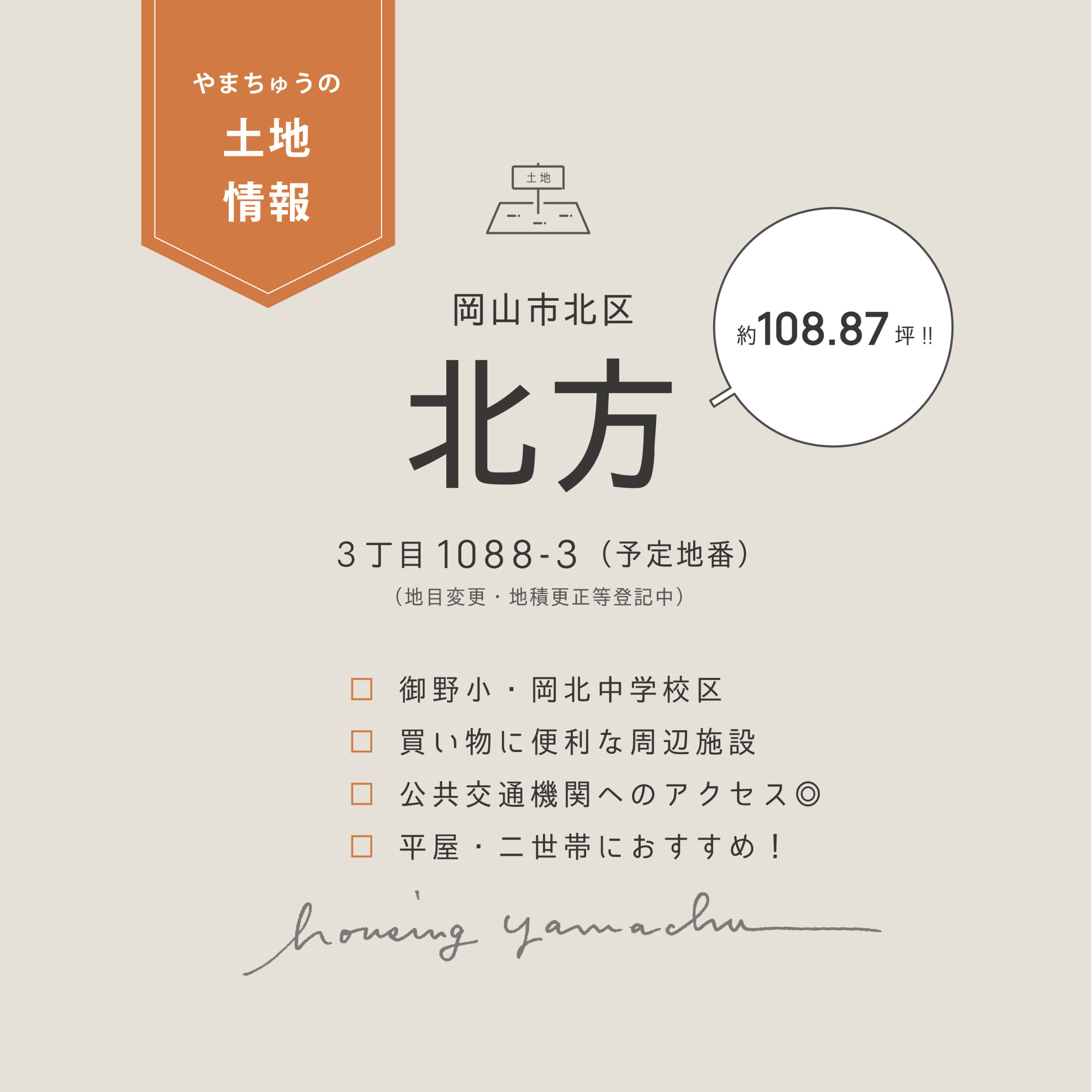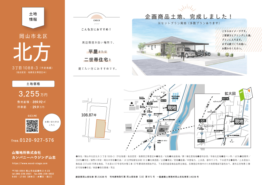 岡山市北区北方3丁目に弊社の企画商品土地が完成しました。