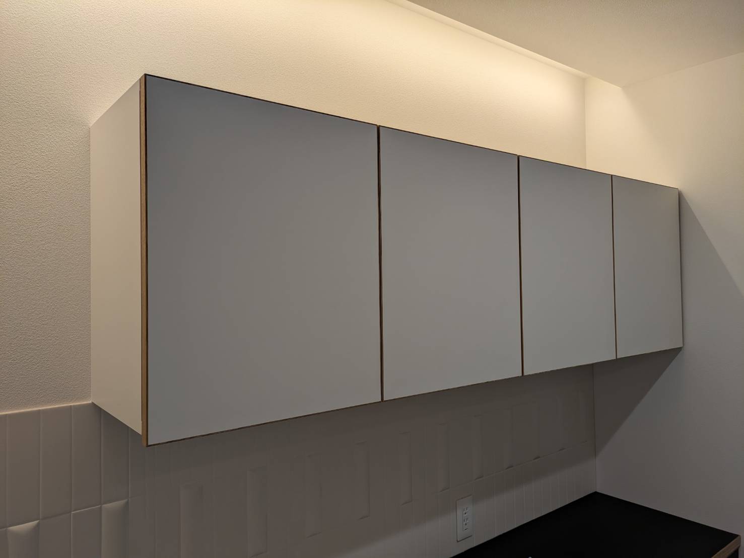 ↓造作カップボードとタイルを照らす間接照明が雰囲気でてますね。