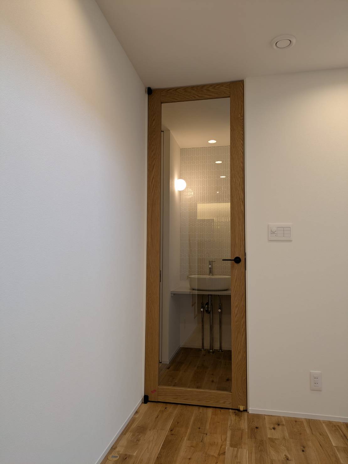 ↓ハイドアから見える手洗い造作洗面台