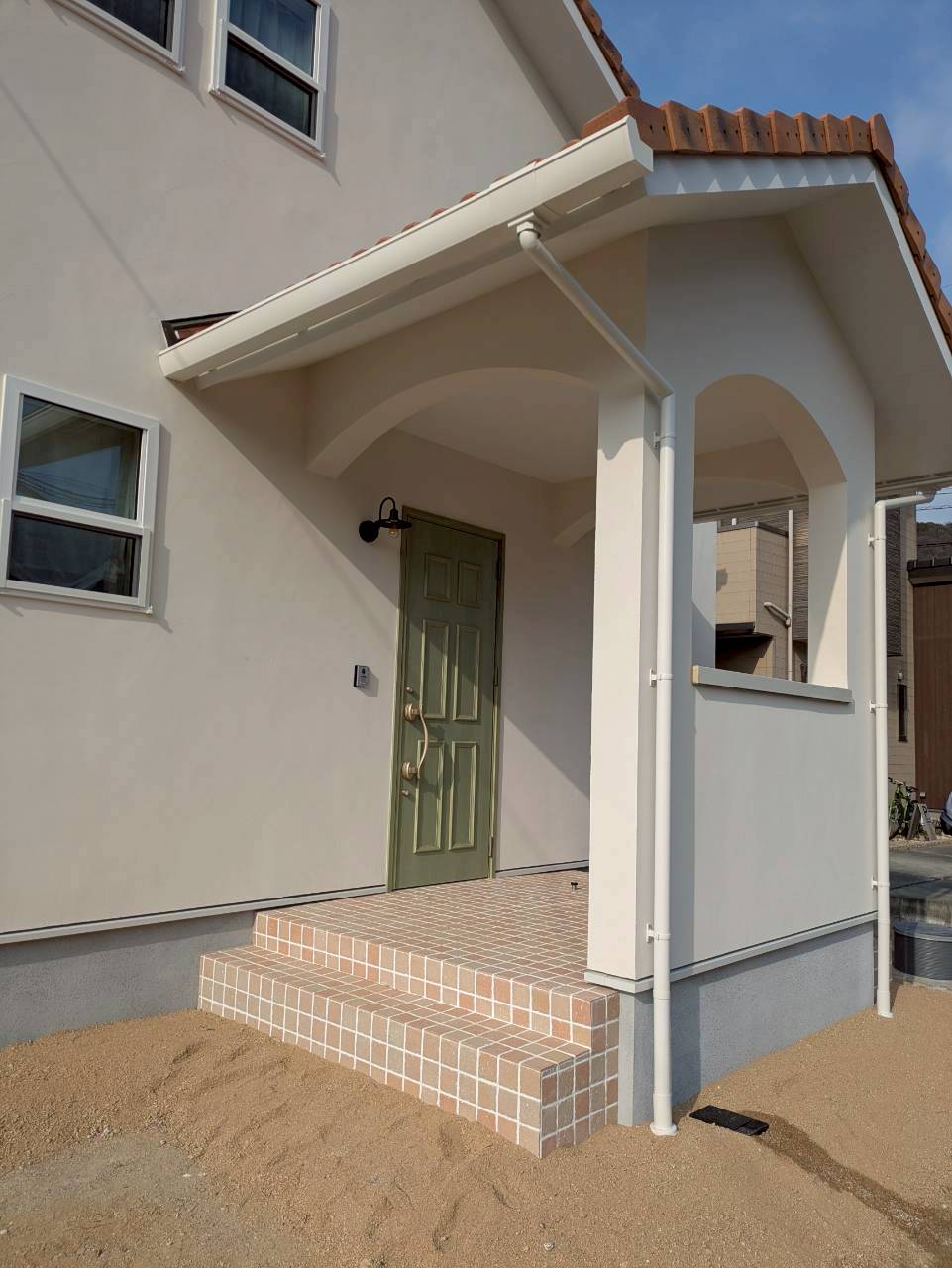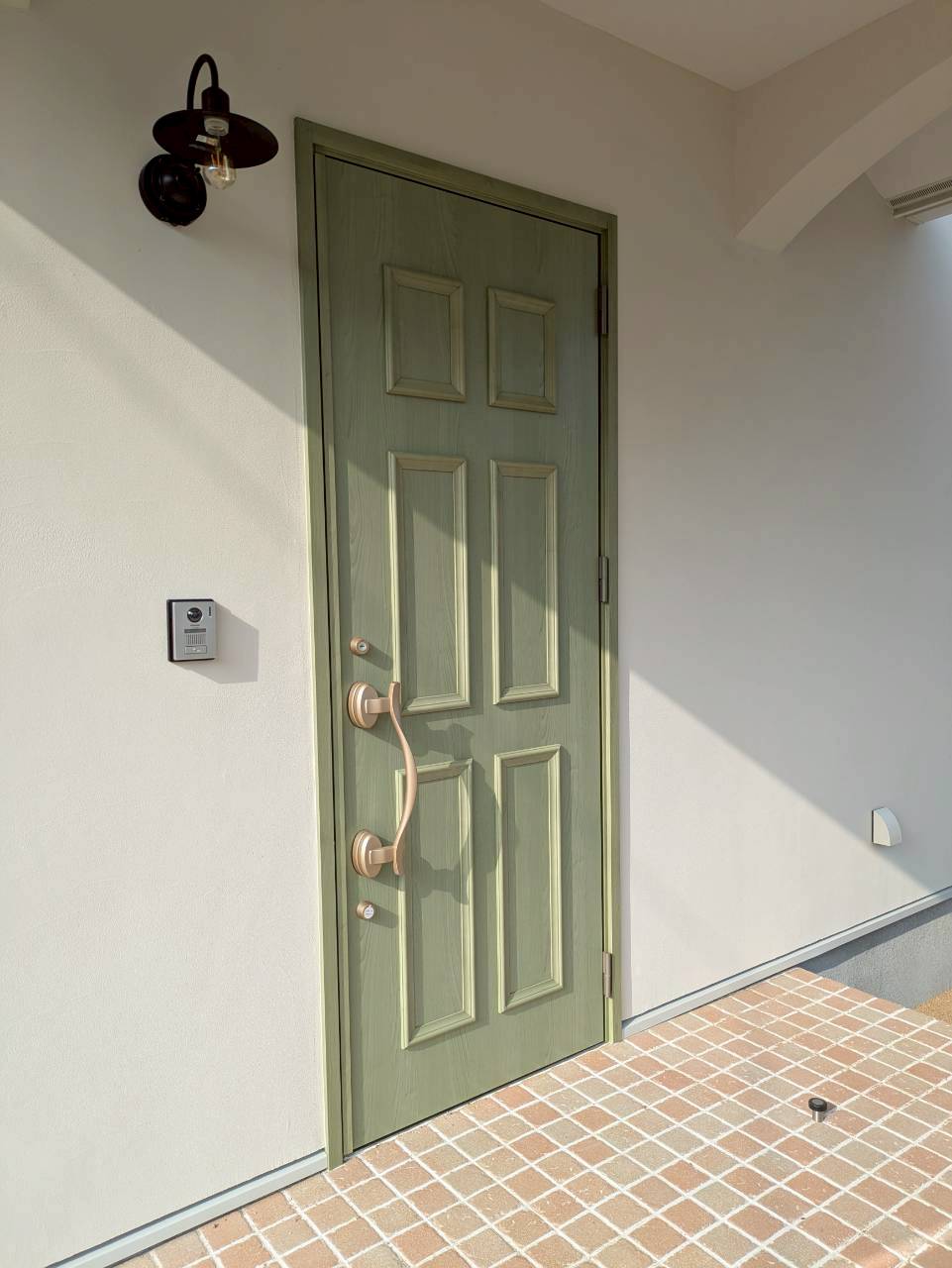 • 瓦屋根 × グリーンの玄関ドア