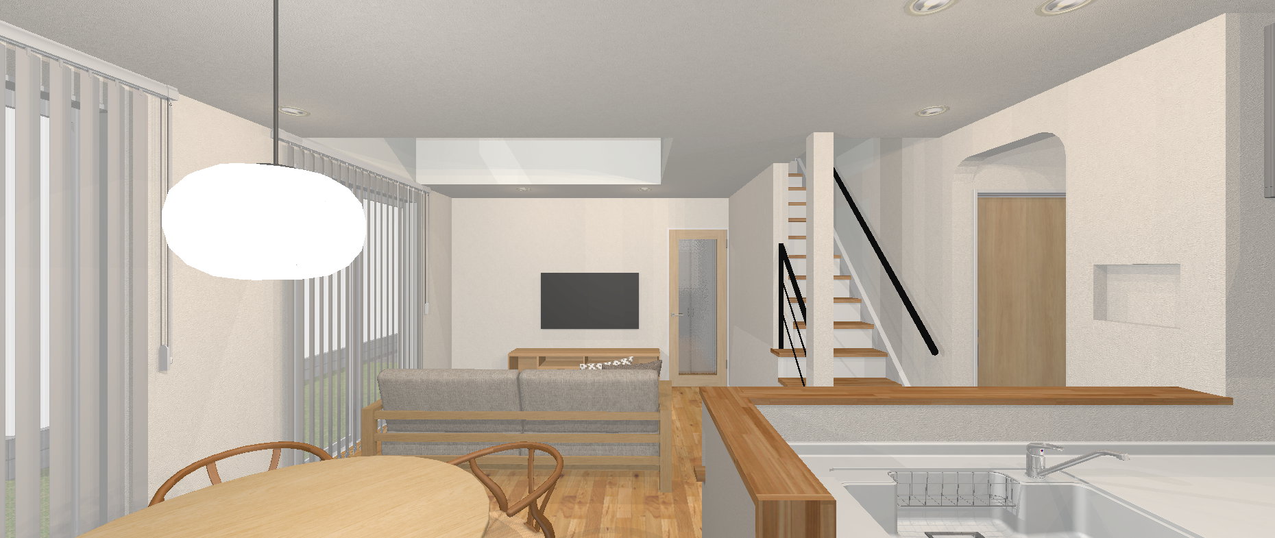 人気の横並びダイニングのプランで、ジャパンディスタイルの