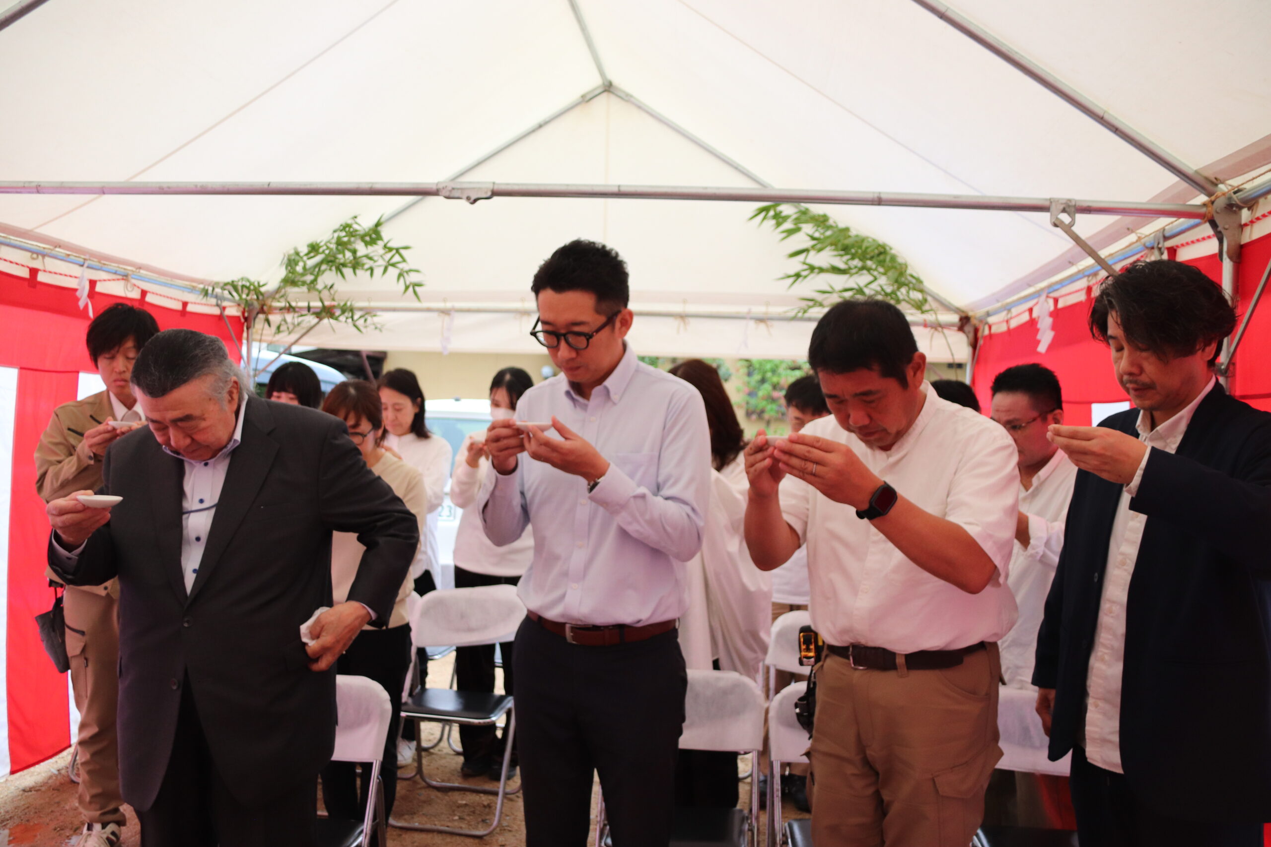 妹尾モデルハウス地鎮祭 2024.10.8 モデルハウス 岡山市南区妹尾にて モデルハウスの地鎮祭を執り行い、 スタッフ全員で工事の無事を祈りました。 2025年2月の完成予定です。 お楽しみに!! お知らせ一覧に戻る→