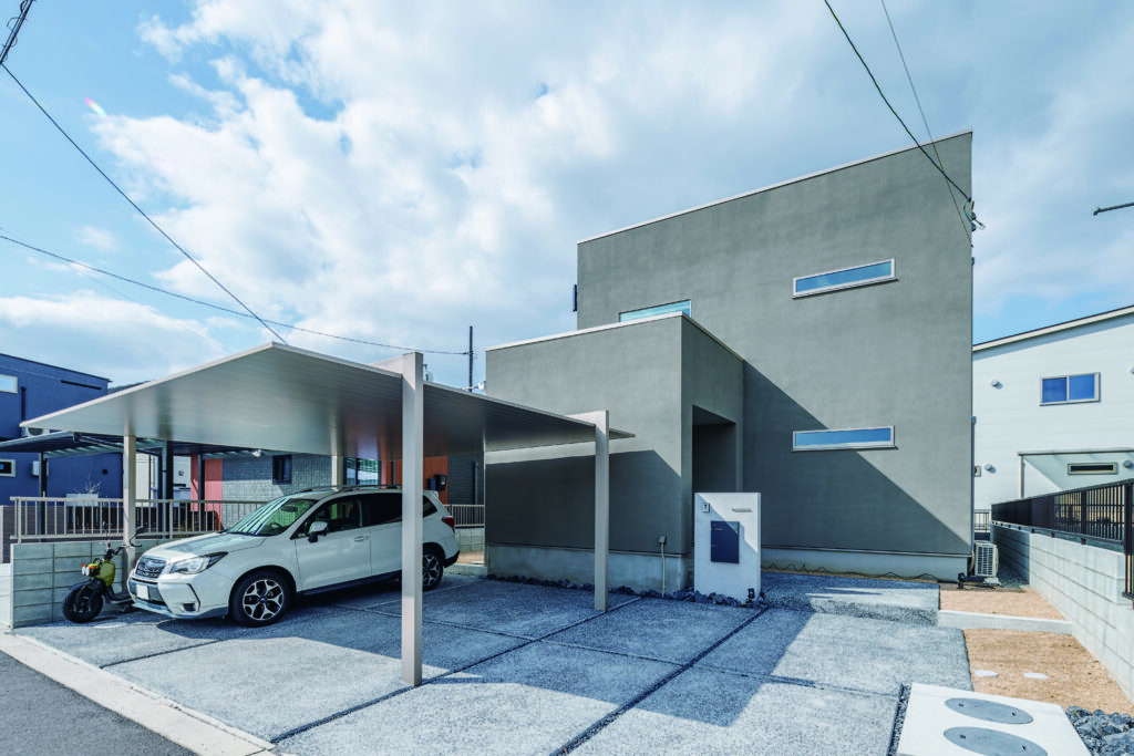 シンプルで洗練されたグレーの外観が目を引くI様邸。