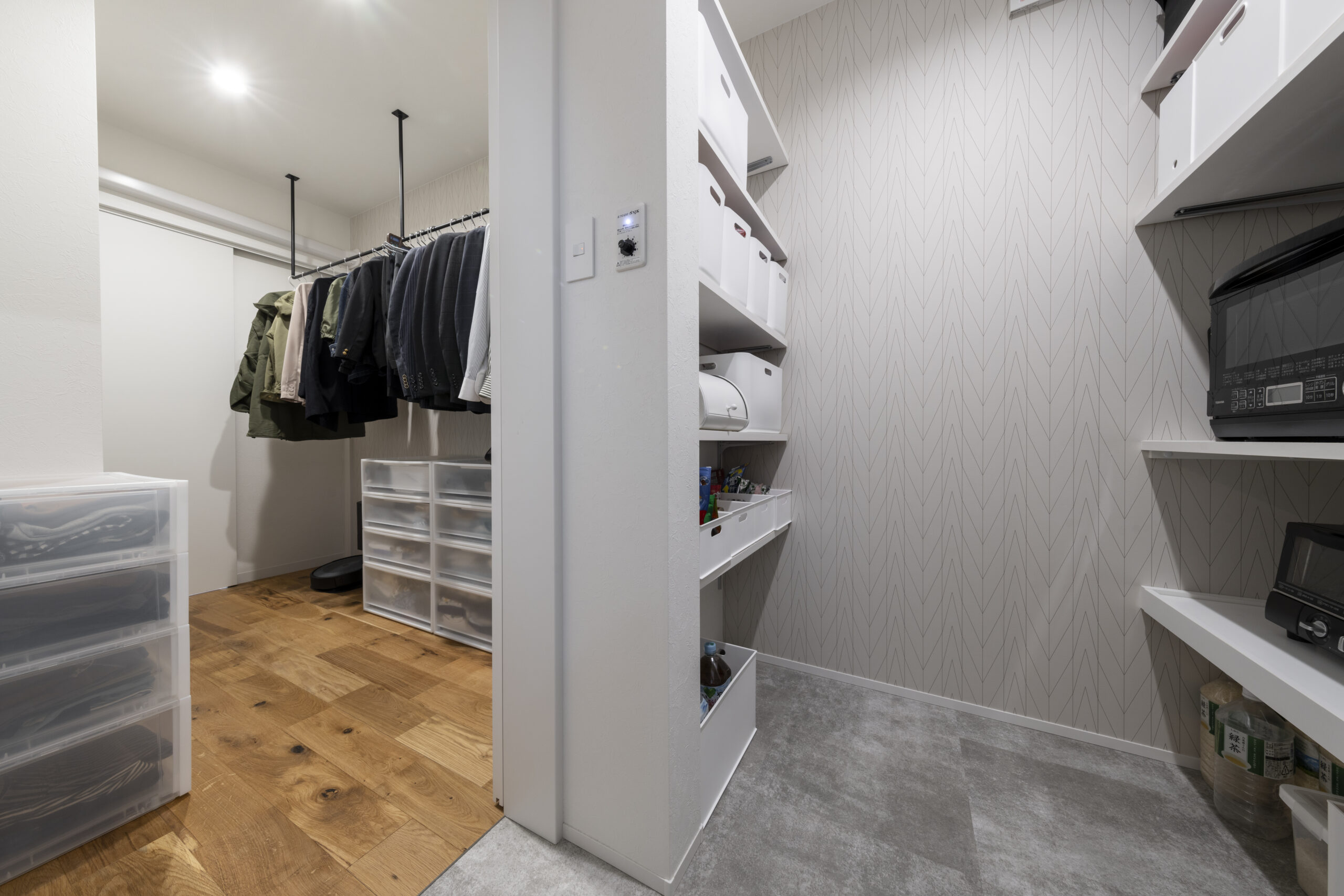 洗面からキッチン→パントリー、そしてクロークへと通じる動線や、広々としたランドリールームなど日々の暮らしを豊かにしてくれる